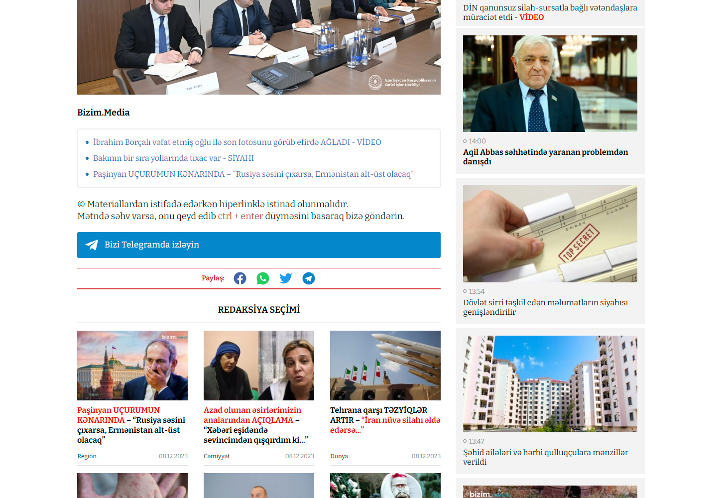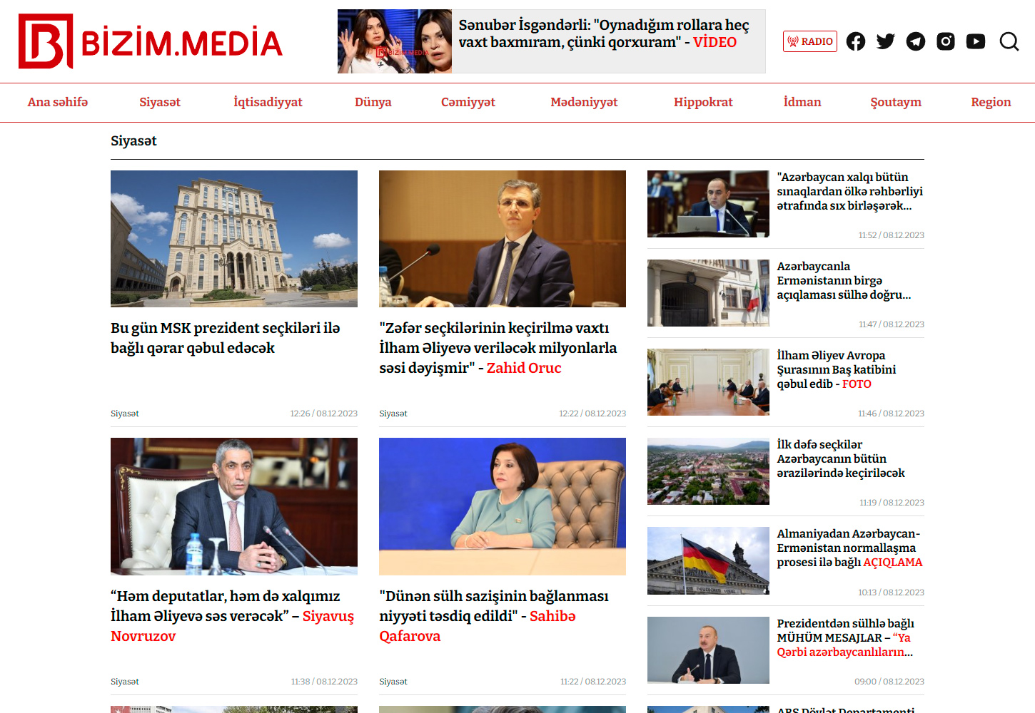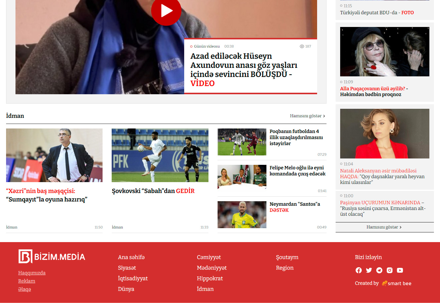 "Bizim.Media" saytı üzərindən Azərbaycanın ictimai, siyasi, sosial və mədəni həyatında olan yeniliklərlə bərabər, dünyada baş verən maraqlı hadisələri izləyə və xəbərdar ola bilərsiniz.