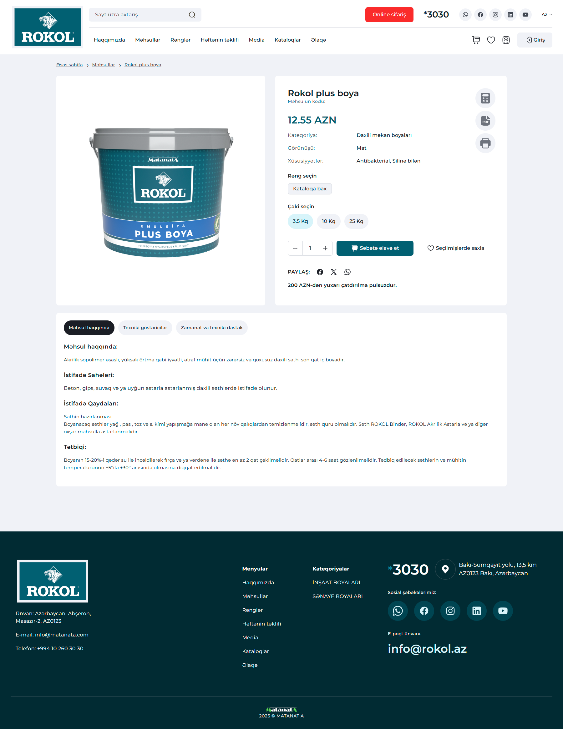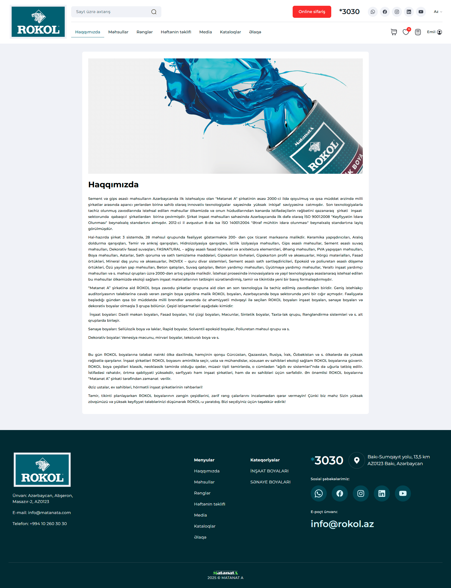 Mətanət A” şirkətinə aid ROKOL boya zavodu şirkətlər qrupuna aid olan ən son texnologiya ilə təchiz edilmiş zavodlardan biridir. Geniş istehlakçı auditoriyasının tələblərinə cavab verən zəngin boya çeşidinə malik ROKOL boyaları, Azərbaycanda boya sektorunda yeni bir cığır açmışdır.