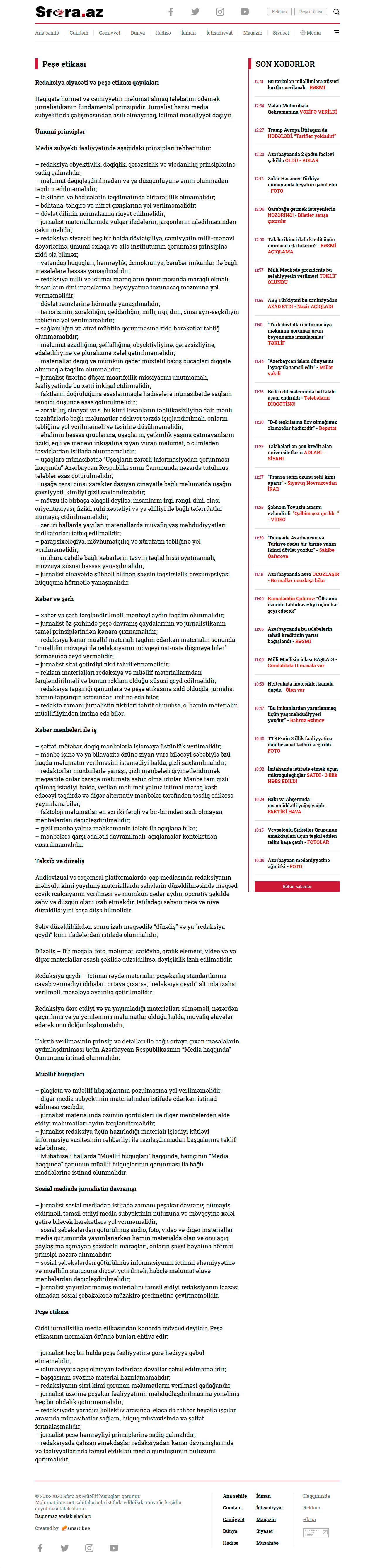 Ölkəmizdə müstəqil informasiya siyasəti həyata keçirən media qurumu kimi tanınan "Sfera.az" saytında Azərbaycanın ictimai, siyasi, sosial, mədəni və digər həyatında olan yeniliklərlə bərabər, dünyada baş verən maraqlı xəbərlər də oxuculara çatdırılır.